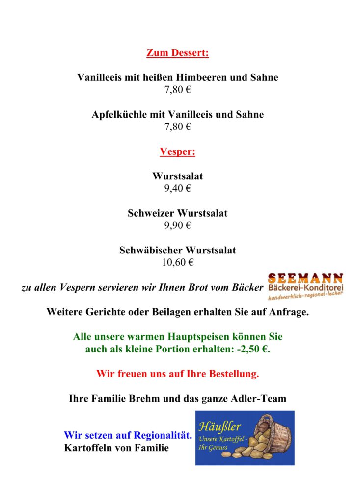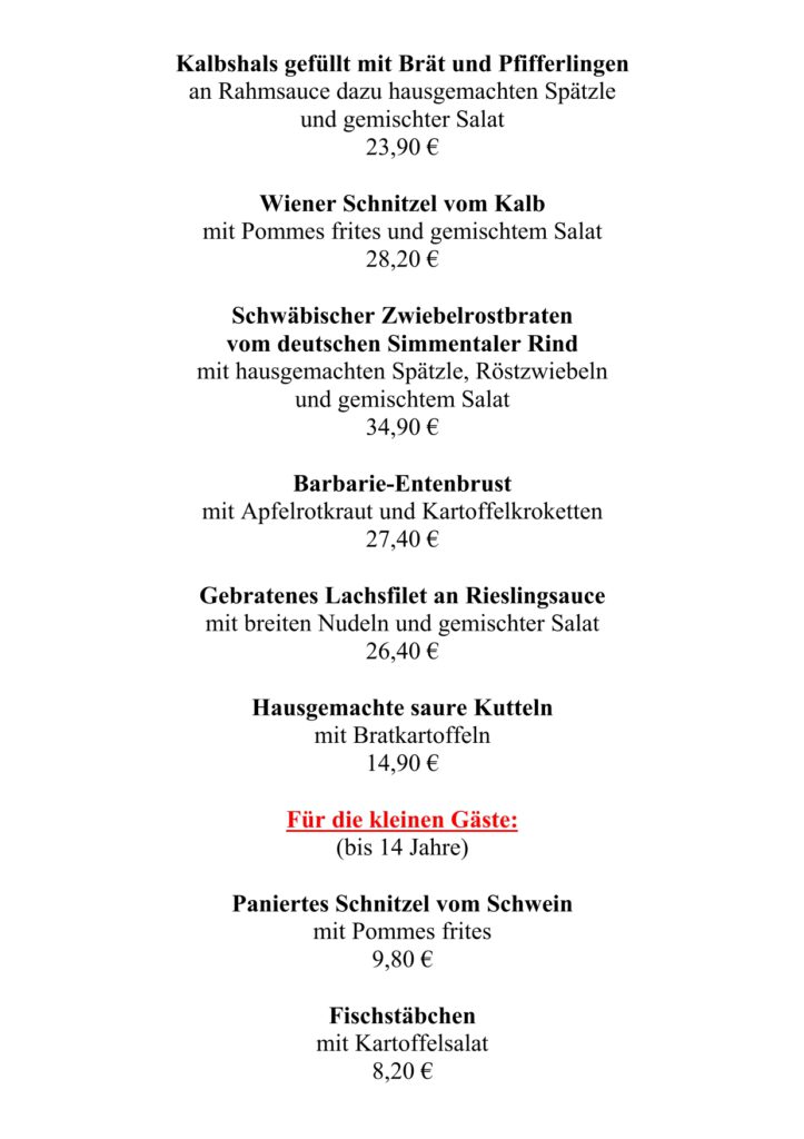 • Speisekarte