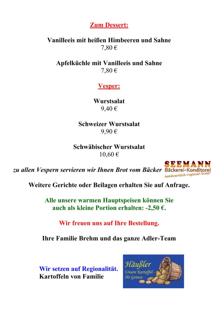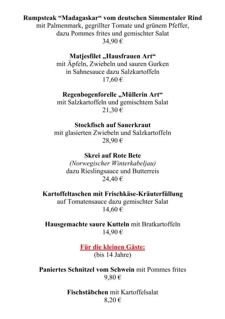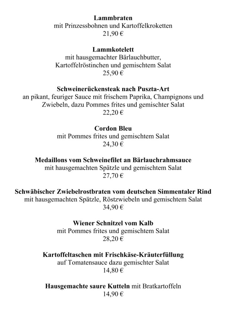 • Speisekarte